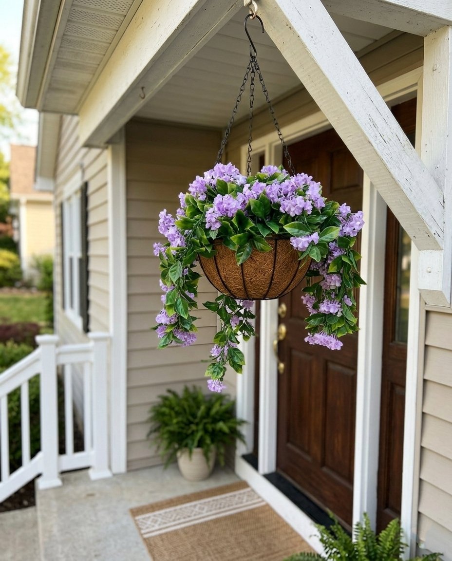 No watering, pruning, or sunlight required to keep them looking beautiful. These artificial hanging baskets stay full and colorful all year, giving you the charm of real flowers without the work.