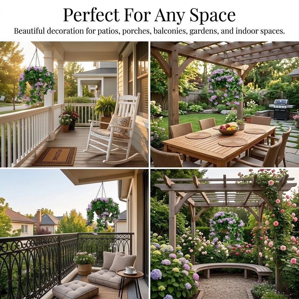 Ideal for patios, porches, balconies, gardens, front doors, or indoor spaces. These hanging flower baskets instantly add color and charm to everyday décor, parties, weddings, or seasonal displays