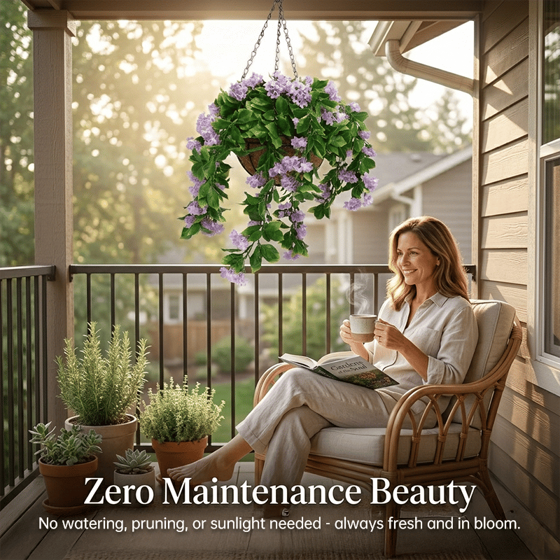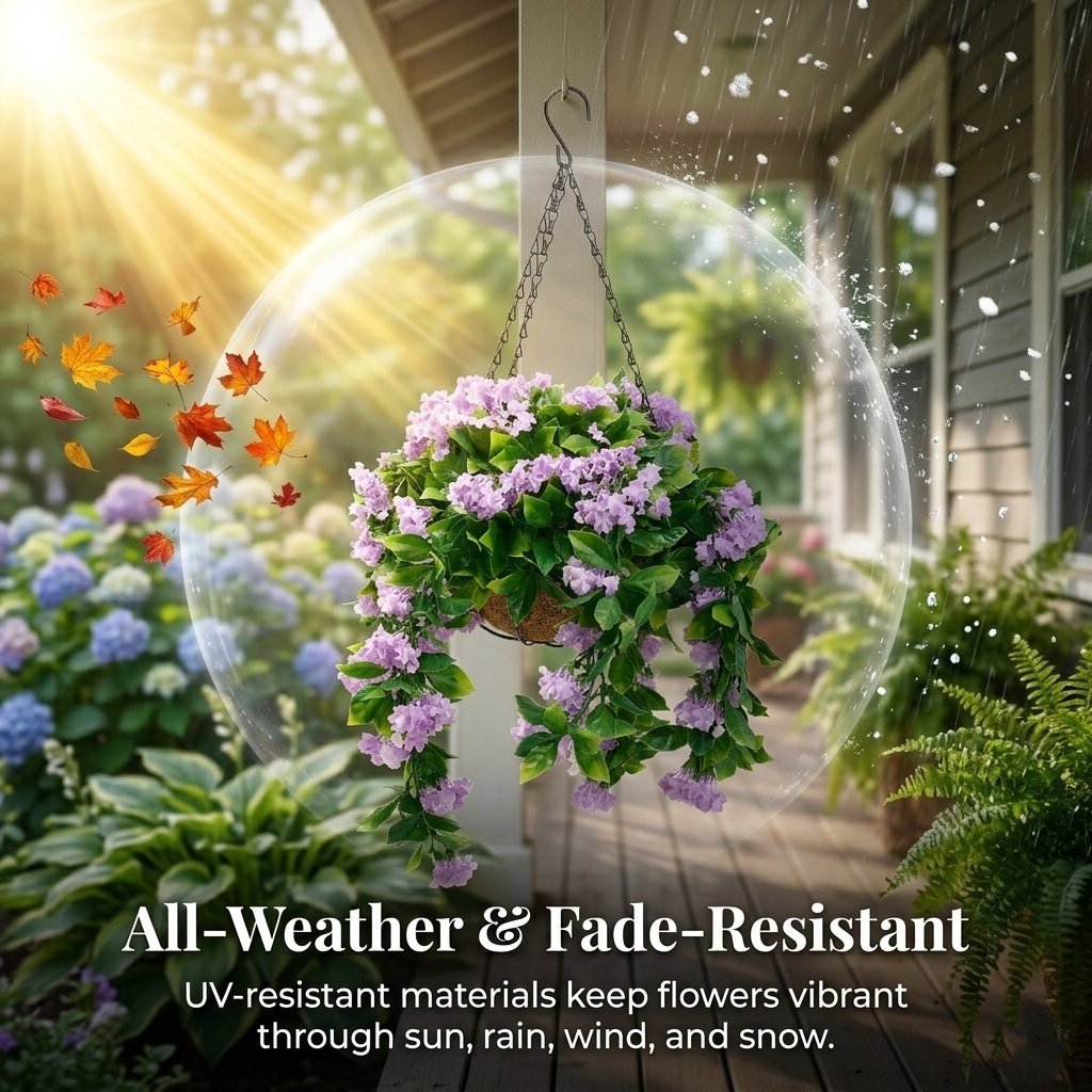 These UV-resistant artificial hanging flower baskets instantly add vibrant color and natural charm to your porch, patio, or balcony—staying lush and beautiful through every season with zero maintenance.